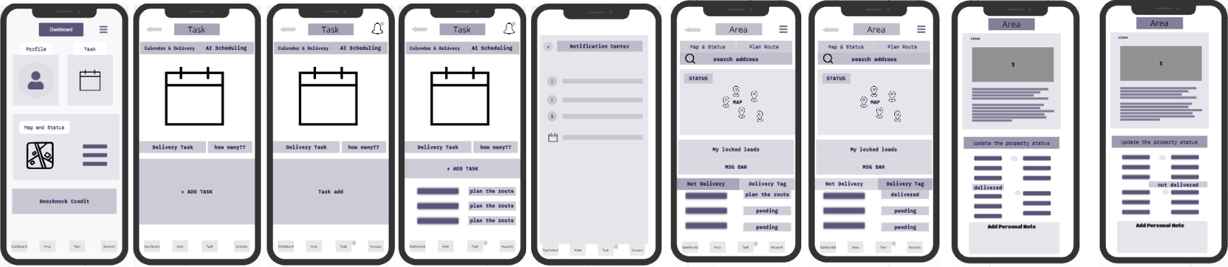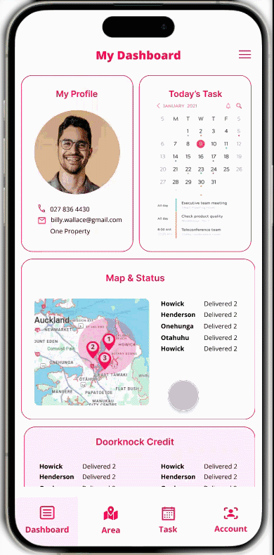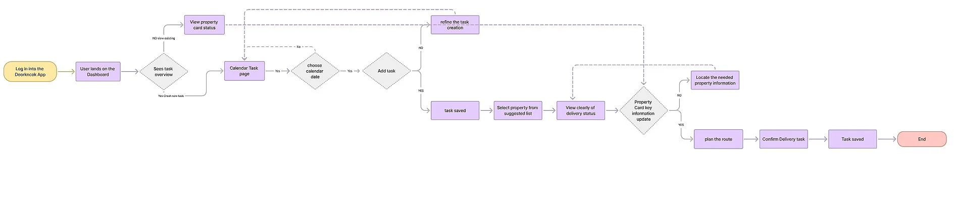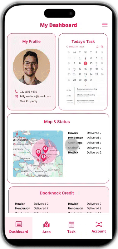 Real estate agents using the Doorknock app struggled to plan and manage delivery tasks effectively. The task creation flow was confusing, the calendar interface felt cluttered, and property scheduling was often unclear.