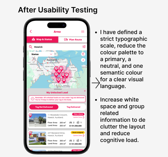 Through user interviews and competitor analysis, I identified key challenges agents faced when using the app. By closely observing their day to day routines and listening to their frustrations and expectations, I developed a deeper understanding of their interactions with the platform. This process revealed not just what issues existed, but why they were happening—enabling more user-centered and impactful design decisions.