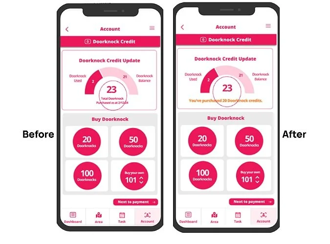 More clarity in data visualisation on how Doorknock credits are used and reflect the remaining balance.