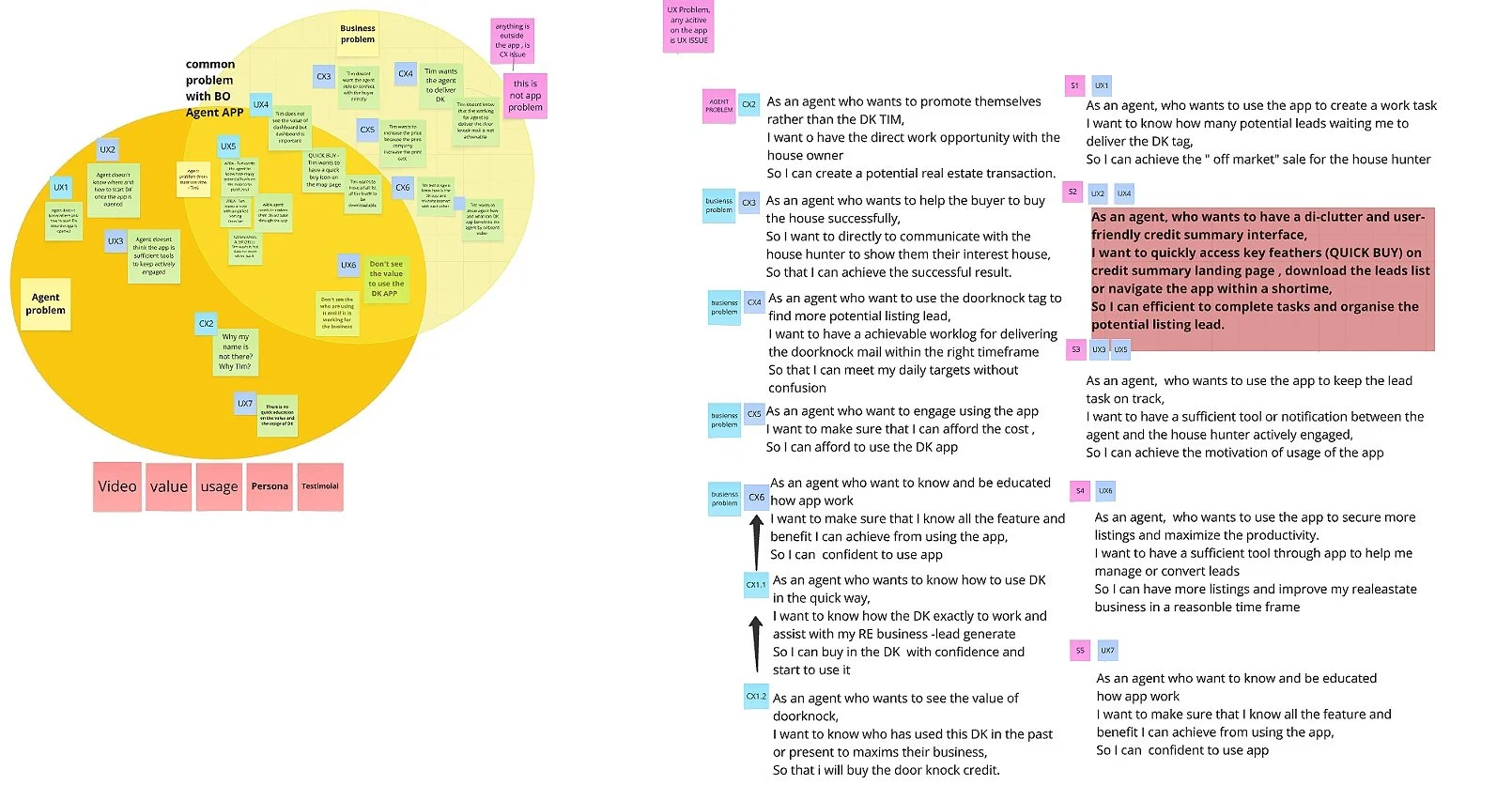 Based on the problem statement and insights from user research, I created user stories to guide a user-focused design approach. The goal was to improve the agent experience within Doorknock’s credit system—making it easier to purchase credits, top up, and review lead usage. Research confirmed the need for a streamlined digital experience that supports the key tasks agents perform daily. Below are the core jobs the design was built to support: