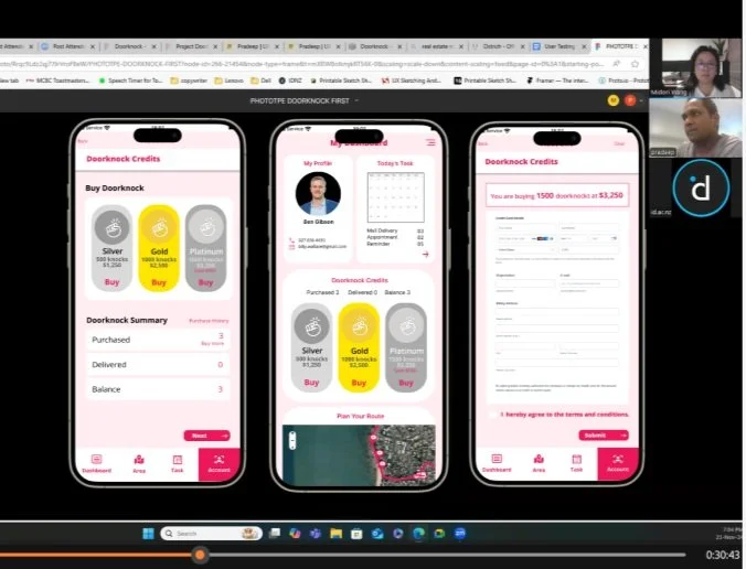 Usability testing of the Doorknock credit flow delivered excellent results. Users completed the process in just 20–30 seconds, with clear satisfaction around ease of use and flow clarity.